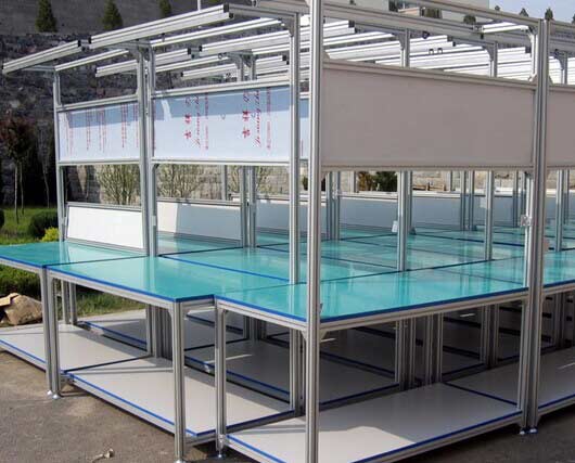 鋁合金工作臺人性化設計,符合人體工程學原理,提高生產效率模塊化設計,多種附件可視需要任意組合,且具有互換性;標準化設計,防靜電工作臺、鋁合金工作臺可根據不同要求,定制您所需產品;高品質臺面,具有防靜電/防火/耐磨等性能;鋁合金工作臺高低可調節,適合您的使用需求;支撐采用鋼結構設計,堅固耐用,可均勻承載500kg;整體防靜電,從根本上杜絕潛在靜電對產品的威脅。