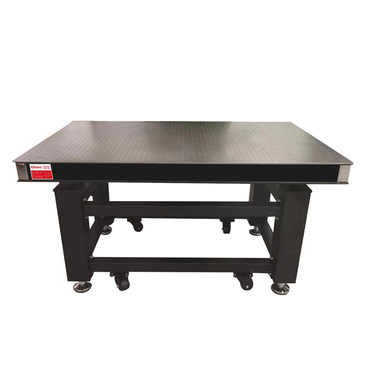 • 臺板采用蜂窩芯夾板結構,具有重量輕、高剛度、高阻尼等優點,上面板為1cr17優質高導磁不銹鋼,經精密研磨處理,表面平面度高。回旋打磨工藝清除毛邊,達到無反射、亞光效果,面板具有M6螺孔,易于固定光學元件。